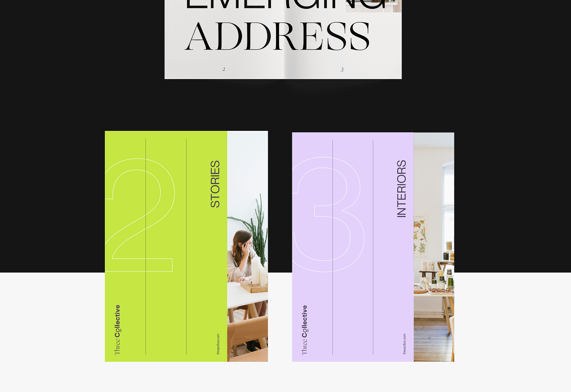 Visual ID created for a US Real Estate and Co-Working project called "Three Collective". 2021 © JUANA
